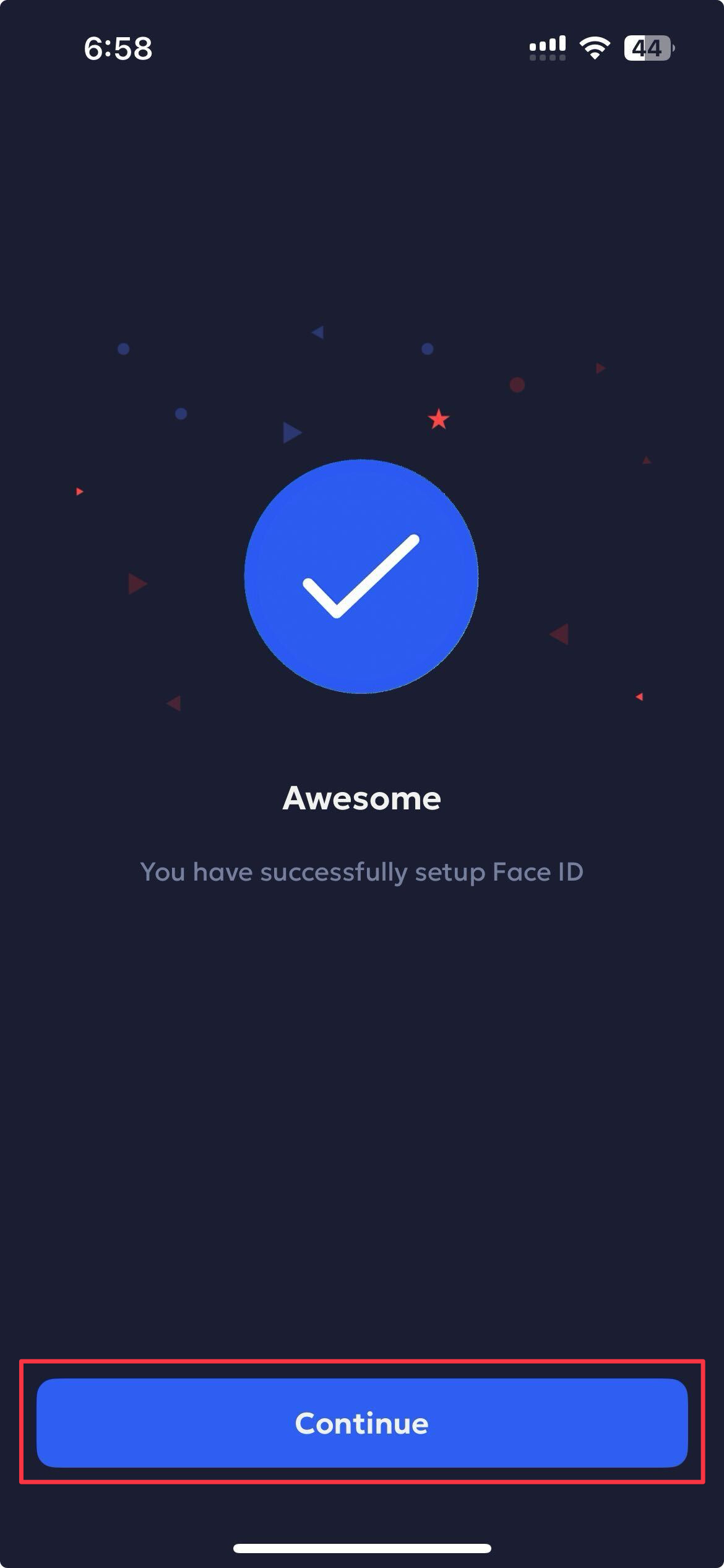 Tap Continue once Face ID is verified and successfully set up.