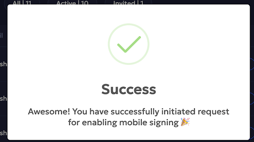 You have successfully initiated a request, enabling mobile access to the Signer’s account. You will receive a notification on your mobile device once the request is successful.