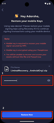Restore Liminal Vaults Mobile MPC Keys on a New Mobile Device