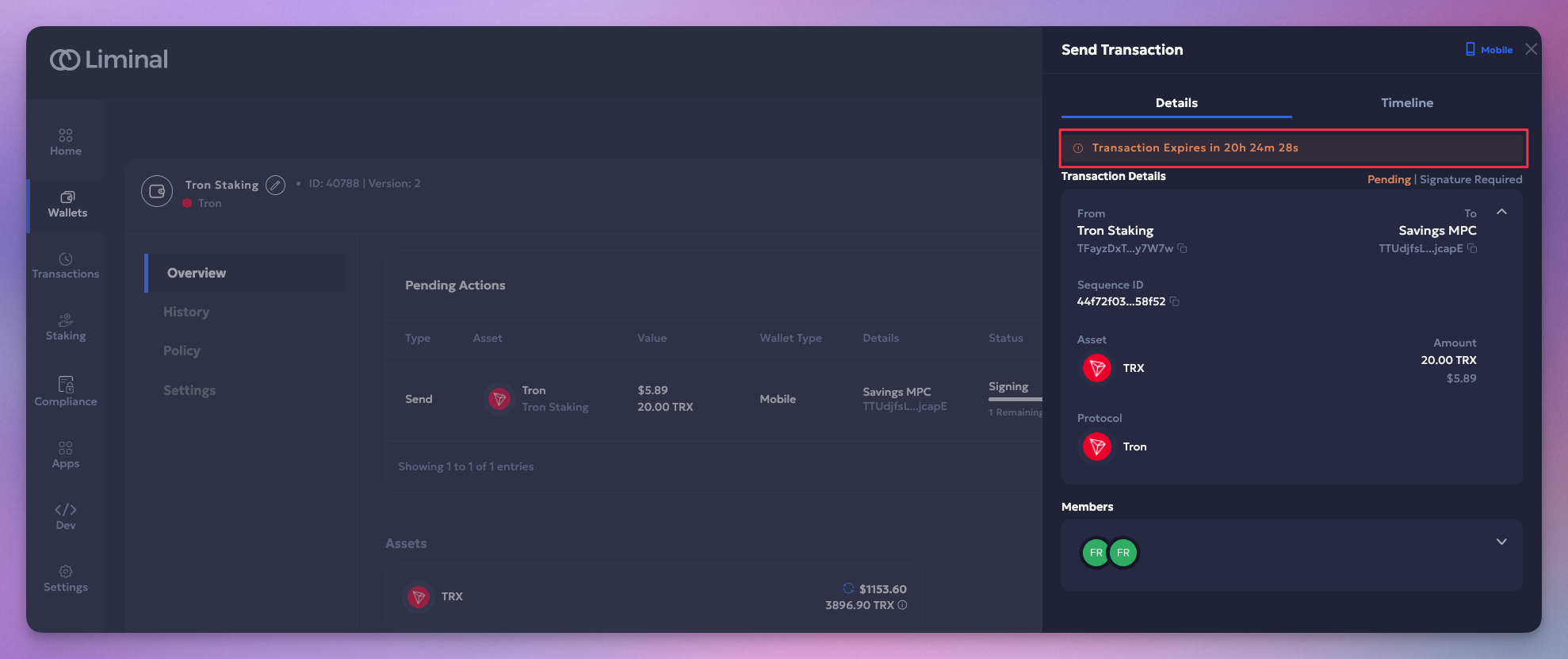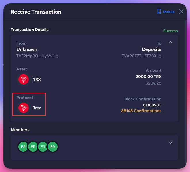 With this release, we have added support for Send transactions using the Tron chain with a 24-hour automatic expiration feature. It is available in the Vaults web for MPC and Multisig transactions. The auto-expiration feature encourages seamless transaction initiation and signing approvals, facilitating faster completions. It also enhances the visibility of transaction status and the management of expired transactions.
